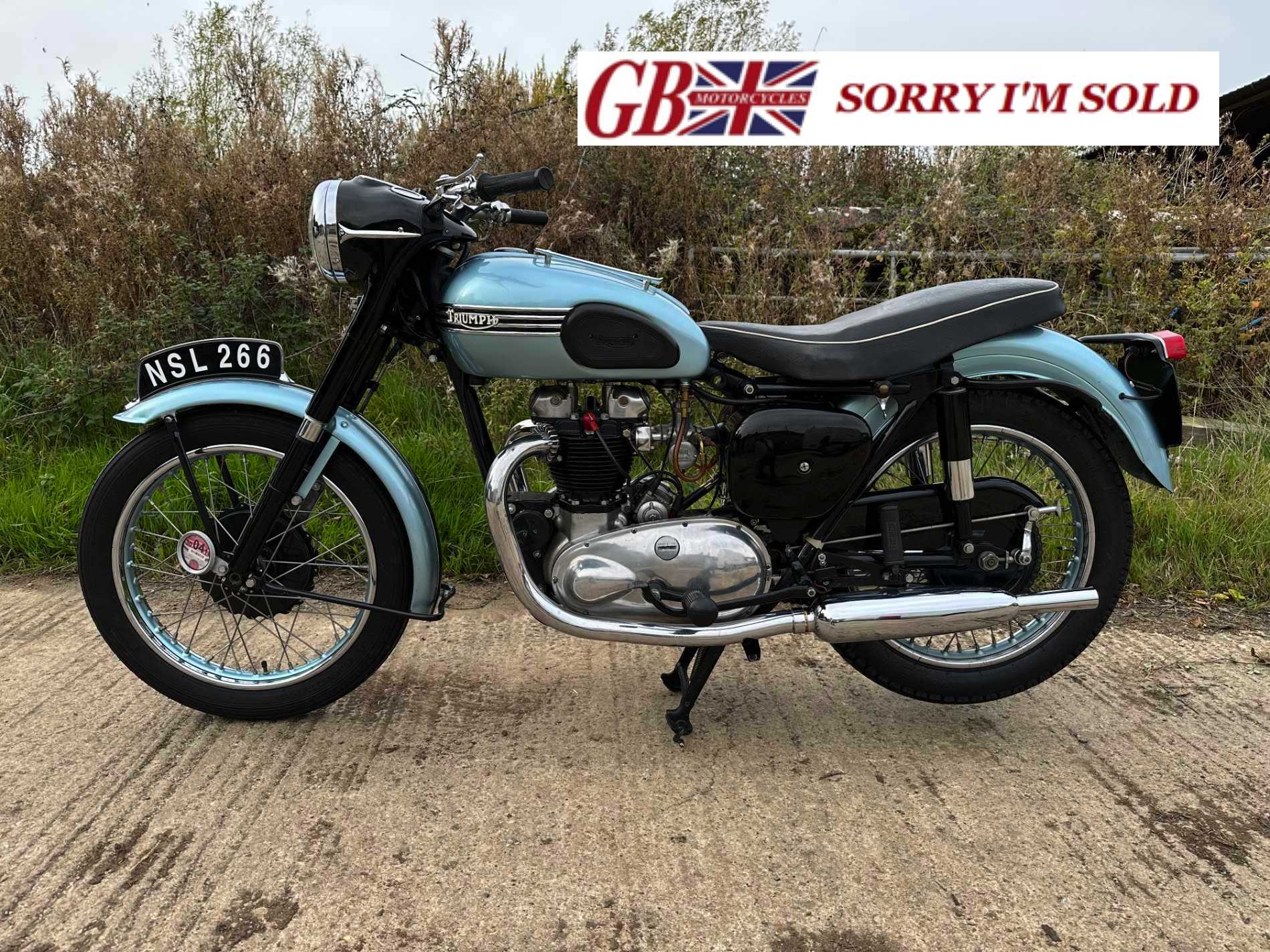 Just arrived we have a matching numbers 1954 Triumph Tiger T110 650cc in Polychromatic Blue.