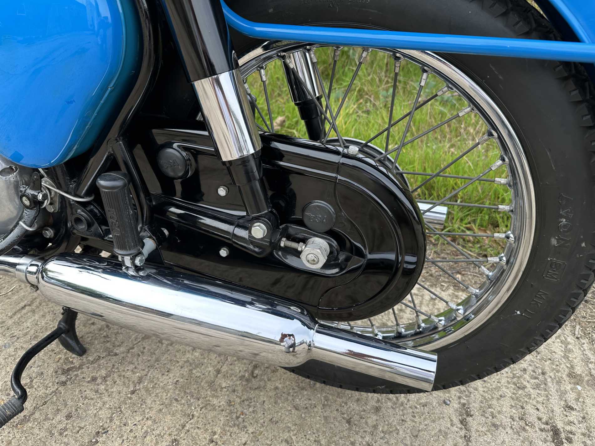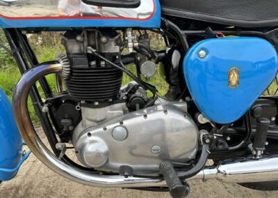 An absolutely gorgeous machine which is fitted with the original B.S.A. saddle, fully enclosed final drive chain-case and both side-stand and centre-stand. This is a real beauty and runs as good as it looks.